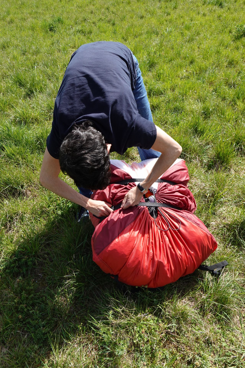 Par ailleurs, l’utilisation d’un sac permettant un rangement rapide de la voile « en bouchon » présente un avantage opérationnel significatif. Cette solution optimise le temps de repli, particulièrement lors de journées de vol sur site (vols effectués entre un décollage et un atterrissage officiels, avec un accès facilité au point de départ via remontées mécaniques ou navettes).