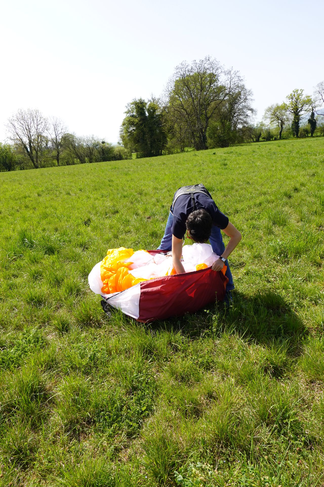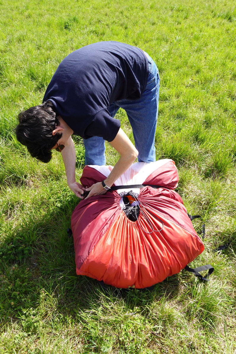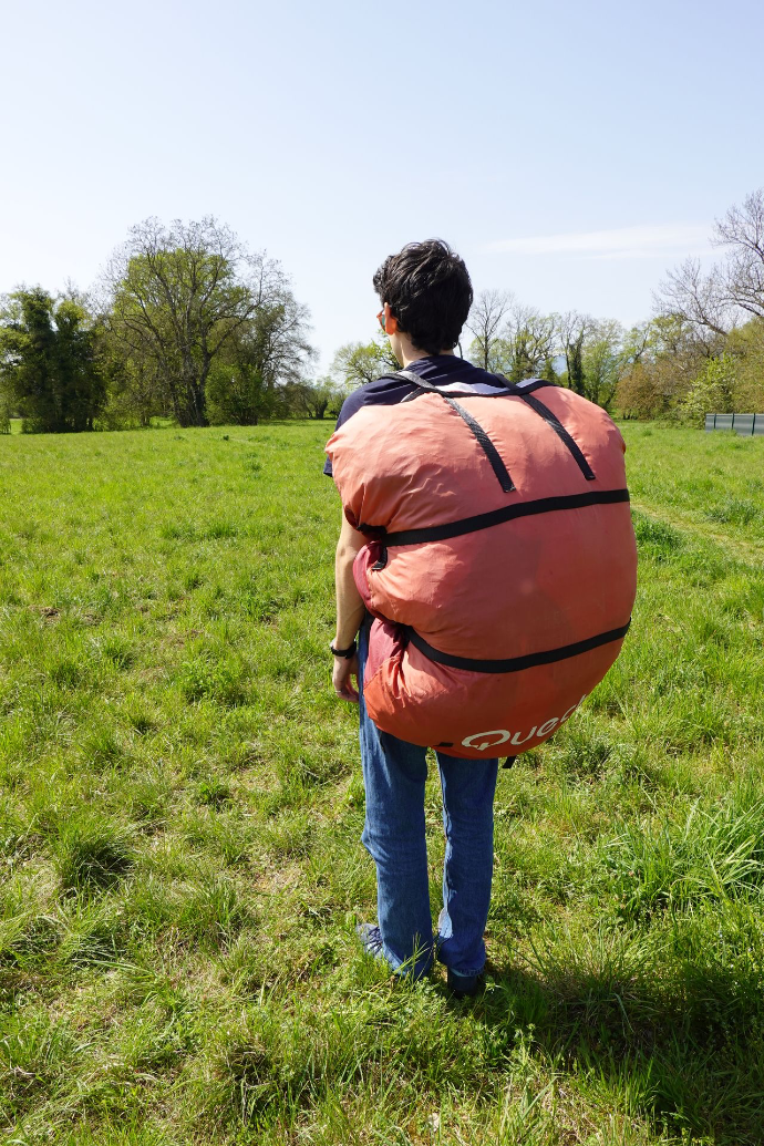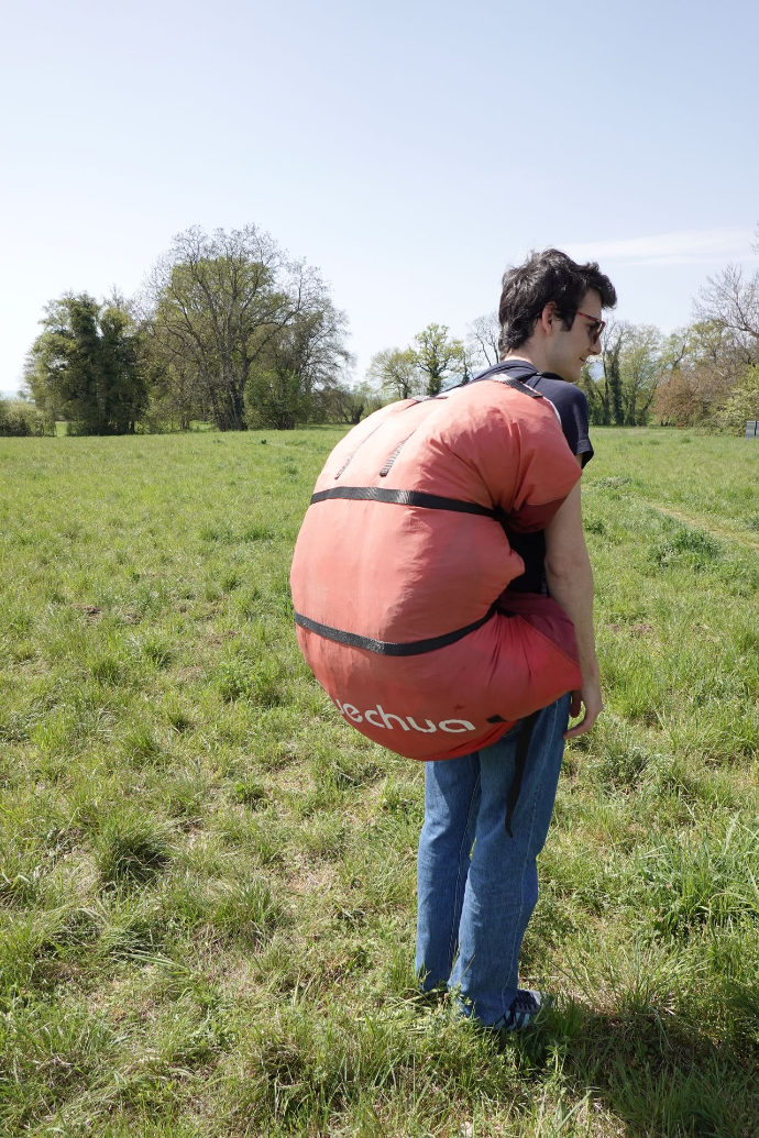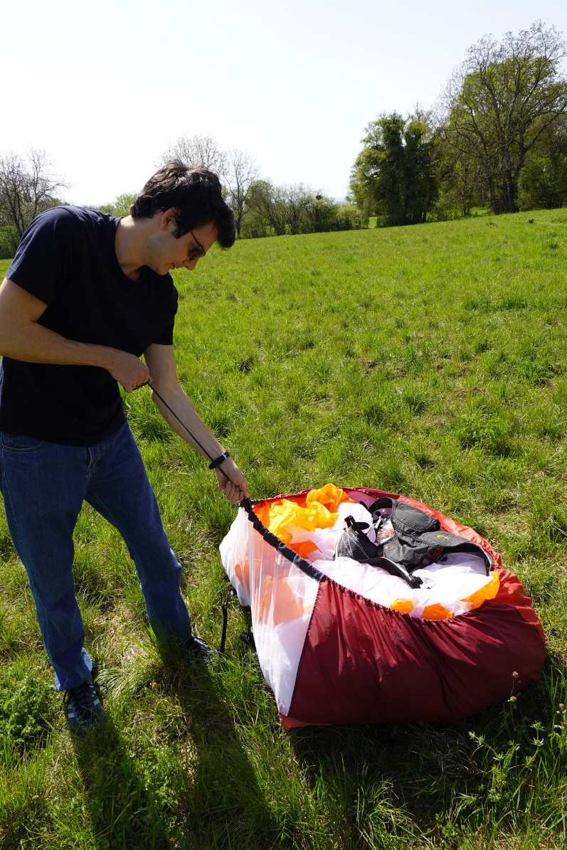 Par ailleurs, l’utilisation d’un sac permettant un rangement rapide de la voile « en bouchon » présente un avantage opérationnel significatif. Cette solution optimise le temps de repli, particulièrement lors de journées de vol sur site (vols effectués entre un décollage et un atterrissage officiels, avec un accès facilité au point de départ via remontées mécaniques ou navettes).